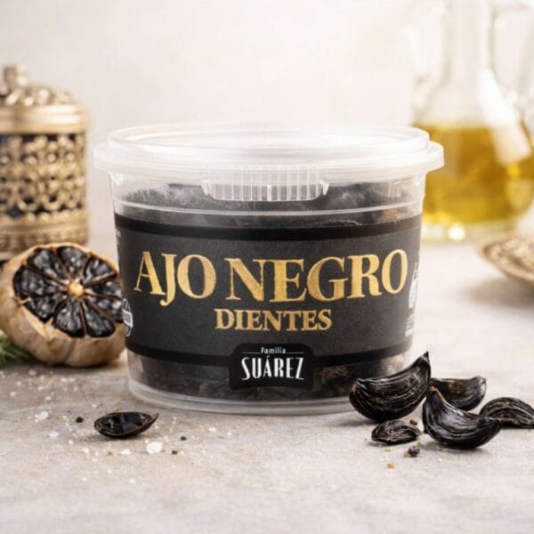 L’ail noir, épluché, DOP Las Pedroñeras, Familia Suárez est un produit d’exception issu de l’ail violet de Las Pedroñeras, reconnu et protégé par une Dénomination d’Origine Protégée (DOP), gage d’origine, de qualité et de savoir-faire.
