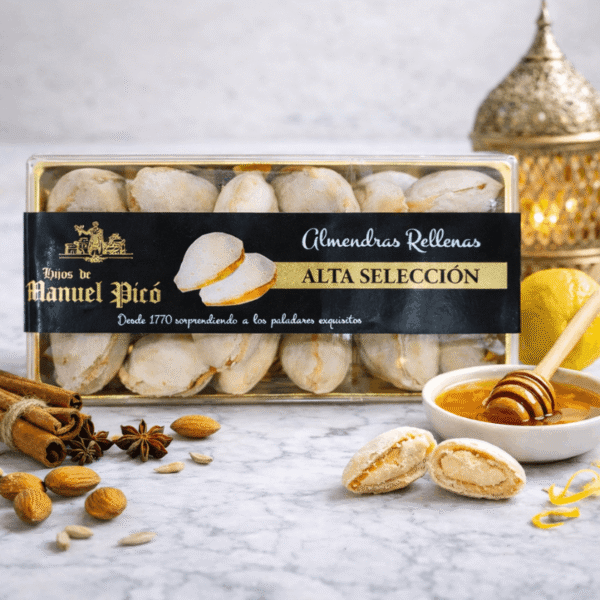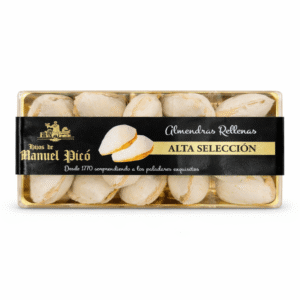 Les amandes fourrées au turrón cannelle & citron Hijos de Manuel Pico sont une confiserie artisanale originale, issue du savoir-faire traditionnel de la maison. Chaque amande est soigneusement sélectionnée pour son croquant et sa qualité, puis délicatement garnie d’un turrón onctueux parfumé à la cannelle et au citron.