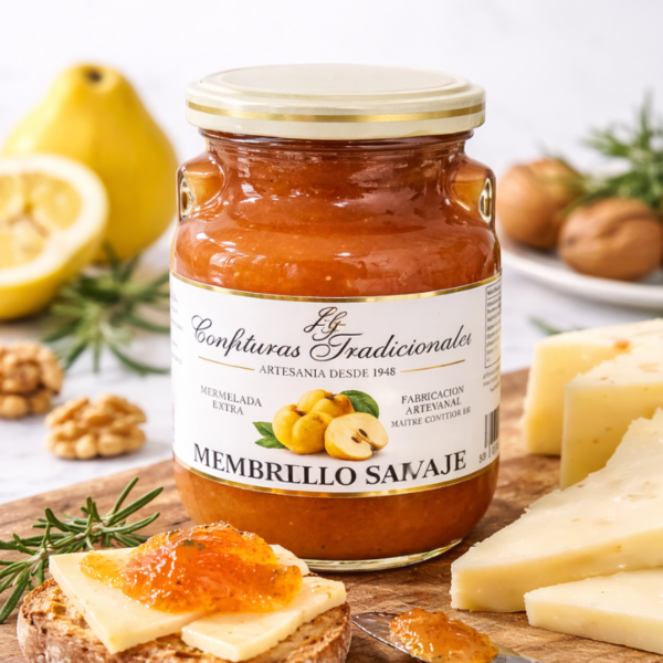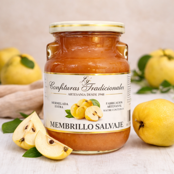 La confiture artisanale de coing sauvage Confituras Tradicionales est élaborée selon un savoir-faire traditionnel, à partir de coings sauvages soigneusement sélectionnés pour leur richesse aromatique et leur caractère.
