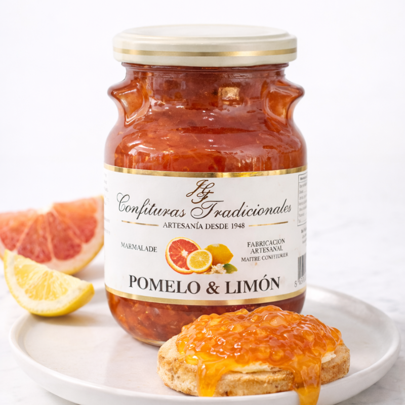 La confiture artisanale de pamplemousse & citron Confituras Tradicionales est élaborée selon un savoir-faire traditionnel, à partir d’agrumes soigneusement sélectionnés pour leur parfum, leur fraîcheur et leur intensité aromatique.