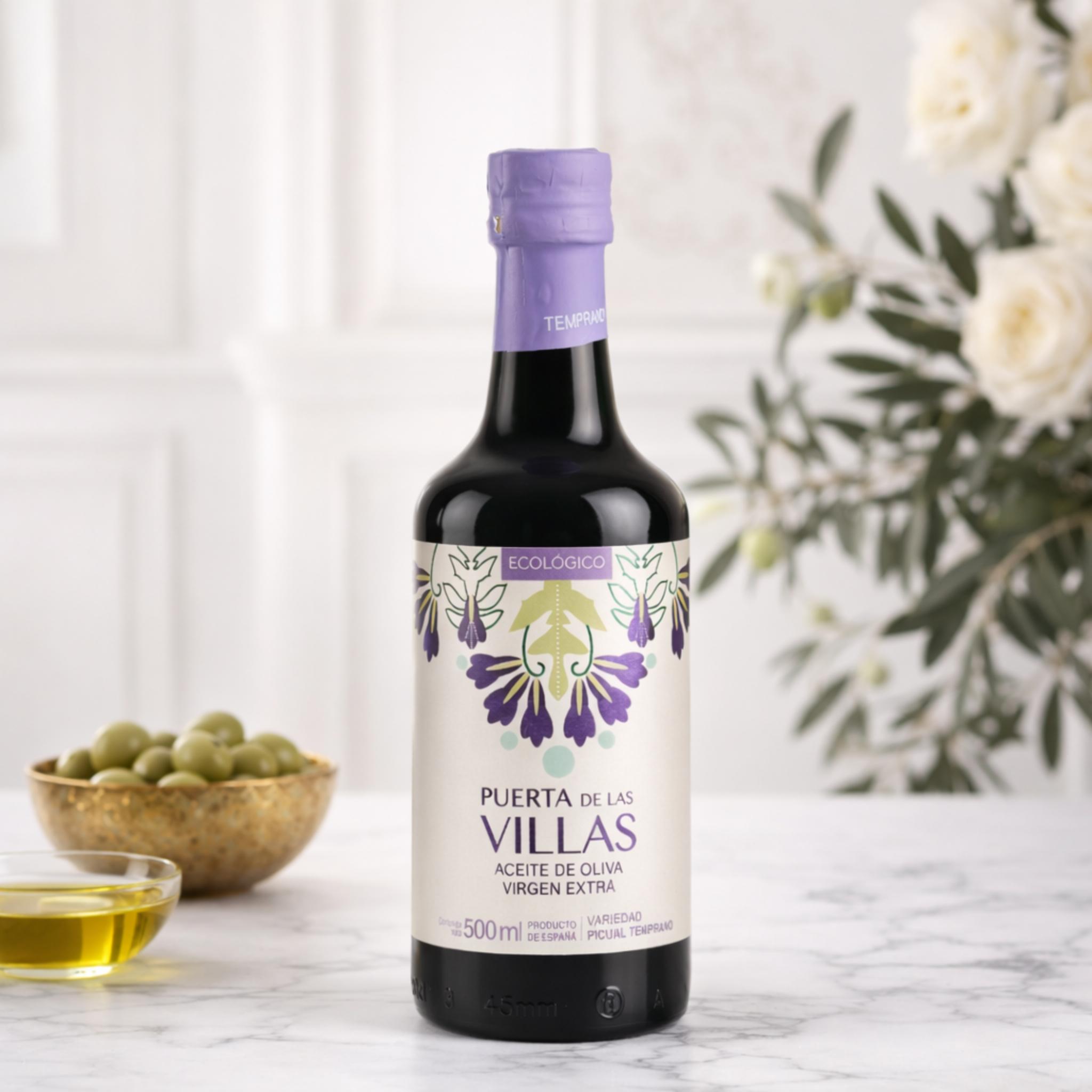L’huile d’olive extra vierge Picual Récolte Précoce BIO, Puerta de las Villas, est une huile d’exception, produite à partir d’olives issues de l’agriculture biologique, cultivées dans le respect de l’environnement au cœur de la province de Jaén, en Andalousie.