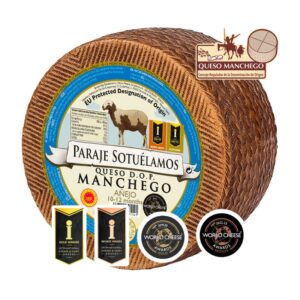Fromage d’exception au lait de brebis affiné 10 à 12 mois, le Manchego Añejo DOP de Vega Sotuelamos révèle une texture ferme et cristalline, des arômes intenses de noisette et une longueur en bouche remarquable. Médaillé d’or au World Cheese Awards, il incarne toute la noblesse du terroir de La Mancha.