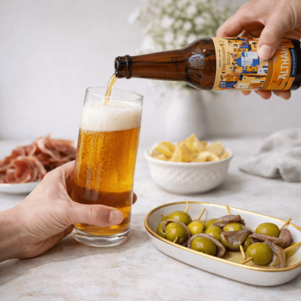 La Mediterranean Märzen Sans Gluten est brassée par la Brasserie Althaia, sur la côte méditerranéenne espagnole. Inspirée du style traditionnel Märzen — bière allemande ambrée historiquement brassée au printemps — elle offre un profil plus malté et légèrement plus structuré qu’une lager classique.