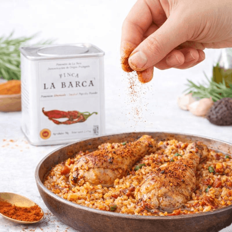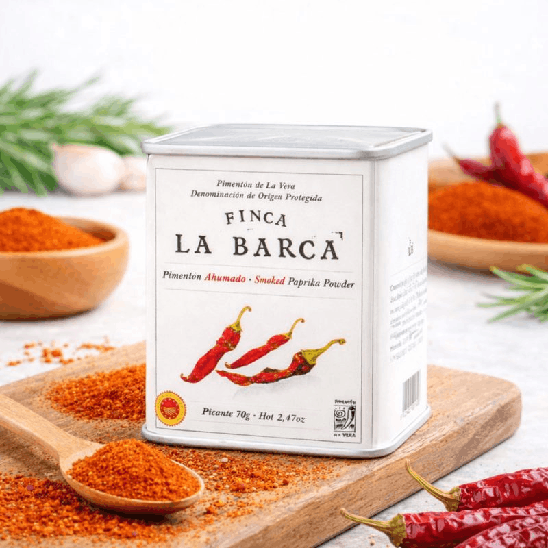 Le Pimentón de la Vera DOP Finca la Barca est une épice d’exception, symbole du patrimoine gastronomique espagnol. Élaboré à partir de piments soigneusement sélectionnés dans la région de La Vera (Estrémadure), il bénéficie de la Dénomination d’Origine Protégée (DOP), garantissant son origine, sa qualité et son mode de production traditionnel.