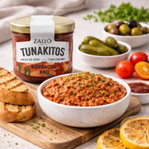Les Miettes de Thon au BBQ Tunakitos sont élaborées à partir de thon rigoureusement sélectionné, délicatement émietté et infusé aux saveurs fumées du barbecue. Chaque bouchée révèle l’alliance parfaite entre la texture fondante du thon et l’arôme authentique du grill, offrant une expérience gustative riche et raffinée.