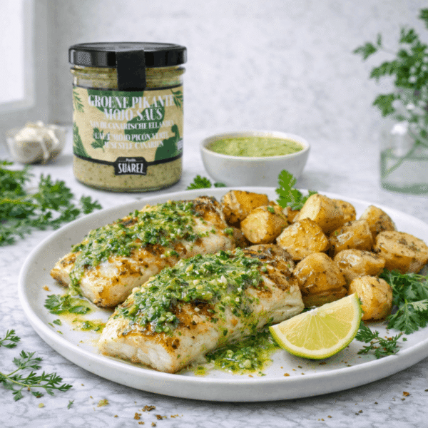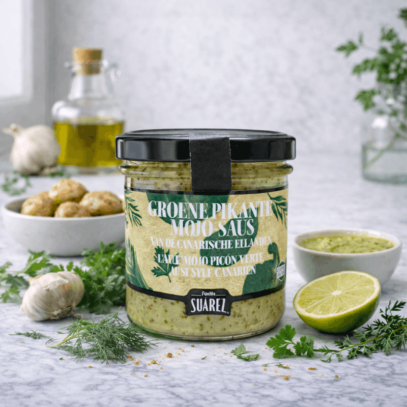 La sauce Mojo Picón Verde Familia Suárez est une spécialité traditionnelle des îles Canaries, reconnue pour sa fraîcheur et son équilibre aromatique. Élaborée selon une recette authentique, elle associe herbes aromatiques, ail et épices pour offrir une sauce verte onctueuse, parfumée et pleine de caractère.