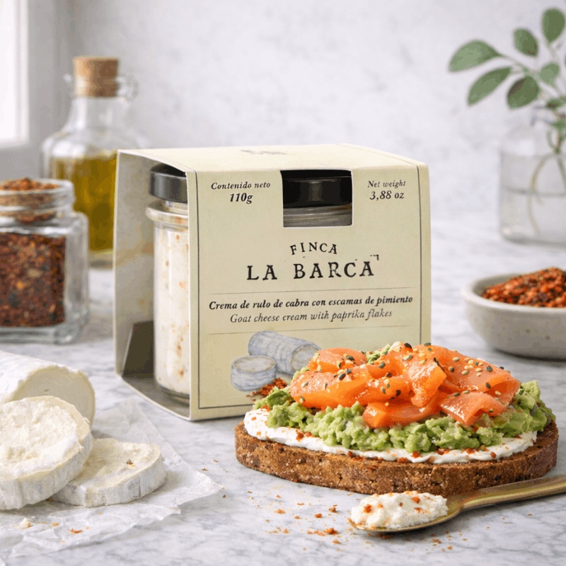 La tartinade crème de chèvre au paprika fumé Finca la Barca est une création savoureuse qui marie la douceur du fromage de chèvre à l’intensité aromatique du paprika fumé, emblème du savoir-faire de la marque.