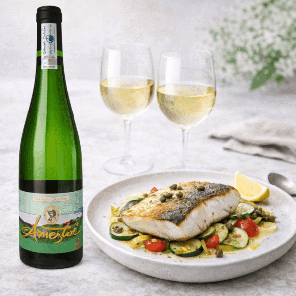 Le Txakoli 2024 d’Ameztoi est un vin de gastronomie marine et de convivialité :